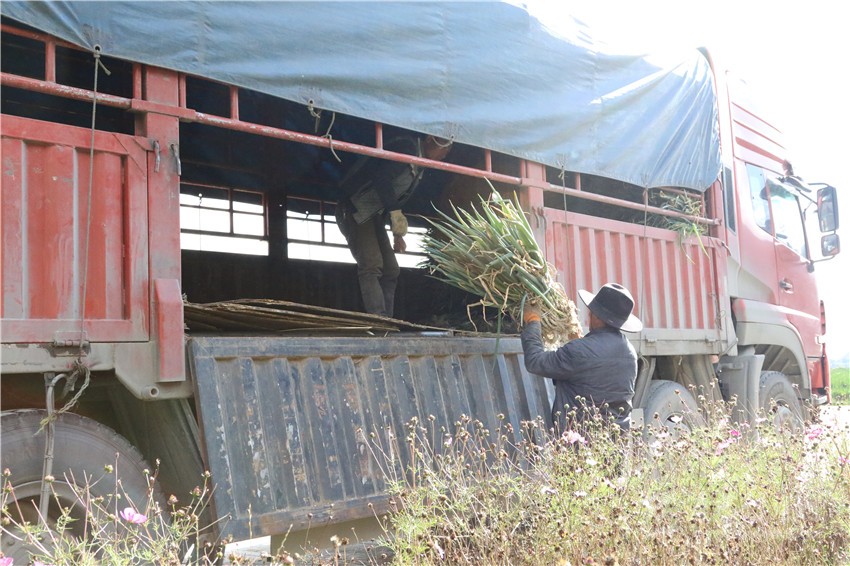 大蔥收割現(xiàn)場(chǎng)。