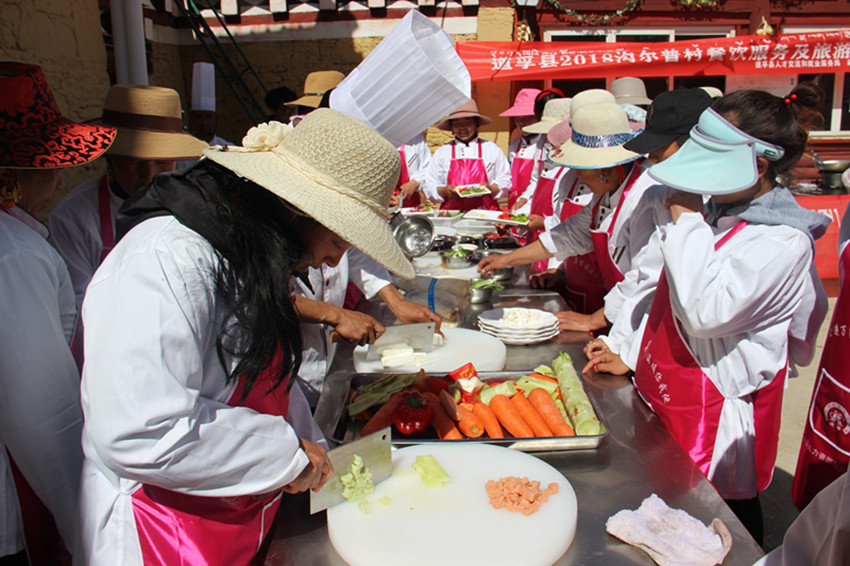 該村立足地處公路沿線的優(yōu)勢,緊抓成都師范學(xué)院幫扶機遇,在深入調(diào)研凍坡甲實際情況后,依托農(nóng)牧民夜校,層層選拔有意愿的村民開展旅游禮貌用語、儀容儀表及禮儀規(guī)矩等方面的培訓(xùn),村上成立了村舞蹈隊、合唱隊,去年村上舉辦了第一屆達瑪花節(jié),建成了村上的精品鄉(xiāng)村民宿,同時由村民所郎尼瑪收徒學(xué)習(xí)民居內(nèi)部裝飾,開辟了青年轉(zhuǎn)移就業(yè)的新途徑,每人月均可收入達1000余元,實現(xiàn)脫貧致富。