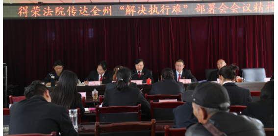 孫菊花原文傳達了州法院吳良軍院長、羅云局長等領(lǐng)導在部署會議上的講話內(nèi)容,結(jié)合本院情況分別從準確把握各項短板和不足、抓好執(zhí)法辦案要務、實現(xiàn)案件分類管理、分段辦理等幾方面向全院干警解讀了會議精神。孫院長對我院下一步的執(zhí)行攻堅工作提出四點要求:一是全院干警要統(tǒng)一思想,通力協(xié)作,舉全院之力不折不扣完成執(zhí)行工作任務;二是各部門要加強協(xié)調(diào)配合、步調(diào)一致,樹立全院一盤棋的思想,在規(guī)范常規(guī)動作的基礎(chǔ)上繼續(xù)加大執(zhí)行強制措施的威懾力;三是執(zhí)行局必須明確目標,緊盯兩個90%工作任務,各辦案小組根據(jù)案件具體情況逐案制定方案個個擊破;四是全力爭取縣委政府的支持和社會各界的理解配合,統(tǒng)一部署,形成多部門、多領(lǐng)域、多手段聯(lián)動執(zhí)行的強大合力。