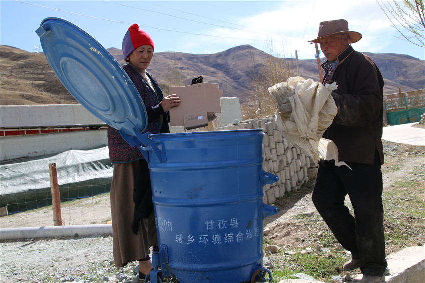 本網(wǎng)訊(謝臣仁 文/圖)近日,甘孜縣南多鄉(xiāng)青卡村村民正在投放垃圾。在開展精準(zhǔn)扶貧中,該縣注重抓好清潔衛(wèi)生工作,在鄉(xiāng)村安置垃圾桶,對垃圾進(jìn)行集中回收,讓“清潔理念”在村民中入腦入心見行動(dòng),形成了好風(fēng)氣,改變了村容村貌。