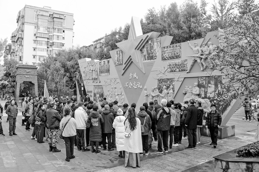 圖為革命后代參觀瞻仰“雪域不會(huì)忘記——康定和平解放暨南下干部入康紀(jì)念浮雕墻”。