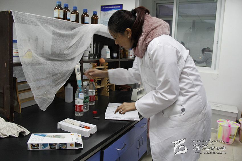 圖為監(jiān)測技術(shù)人員正在分析水樣。(圖片由州環(huán)保局提花供)