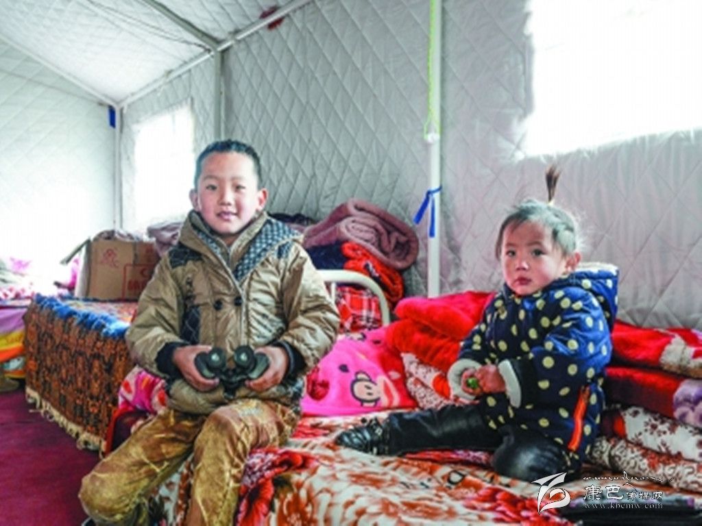 震后的第一個(gè)新年,記者在塔公鄉(xiāng)江巴村看到,一頂頂藍(lán)色的棉帳篷有序搭建在村民自家院落里。隆冬時(shí)節(jié),寒風(fēng)凜冽,走進(jìn)村民措科家的帳篷,一股熱浪卻撲面而來(lái)。小鋼爐上燒著熱水,帳篷里堆放著政府發(fā)放的幾床厚棉被,地上鋪著一層白色的防潮塑料薄膜,措科和三個(gè)孩子正圍著爐子烤火。