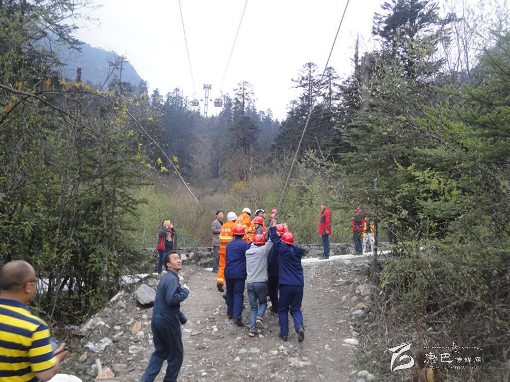 應(yīng)急演練活動(dòng)是模擬索道發(fā)生脫索故障,開展人工救護(hù)應(yīng)急訓(xùn)練。在演練活動(dòng)中,海螺溝客運(yùn)索道出現(xiàn)故障不能運(yùn)轉(zhuǎn),在1C支架和2#支架之間,兩個(gè)車廂共有三名游客滯留空中。海螺溝旅游索道公司立即啟動(dòng)應(yīng)急預(yù)案,救護(hù)總指揮下達(dá)救援指令。后勤組成員對著車廂喊話,穩(wěn)定游客情緒。救護(hù)小組全體人員,安全、有序、迅速到達(dá)各自崗位,地面工作人員與空中救援人員相互配合,同時(shí)密切注意被困乘客的安全情況,正確操作各項(xiàng)程序,僅用半個(gè)小時(shí)就將被困乘客送到地面,安全完成營救。地面輔助救護(hù)人員立即對被營救人員進(jìn)行現(xiàn)場檢查和救治,保障了被營救人員的生命安全,應(yīng)急演練活動(dòng)圓滿完成。