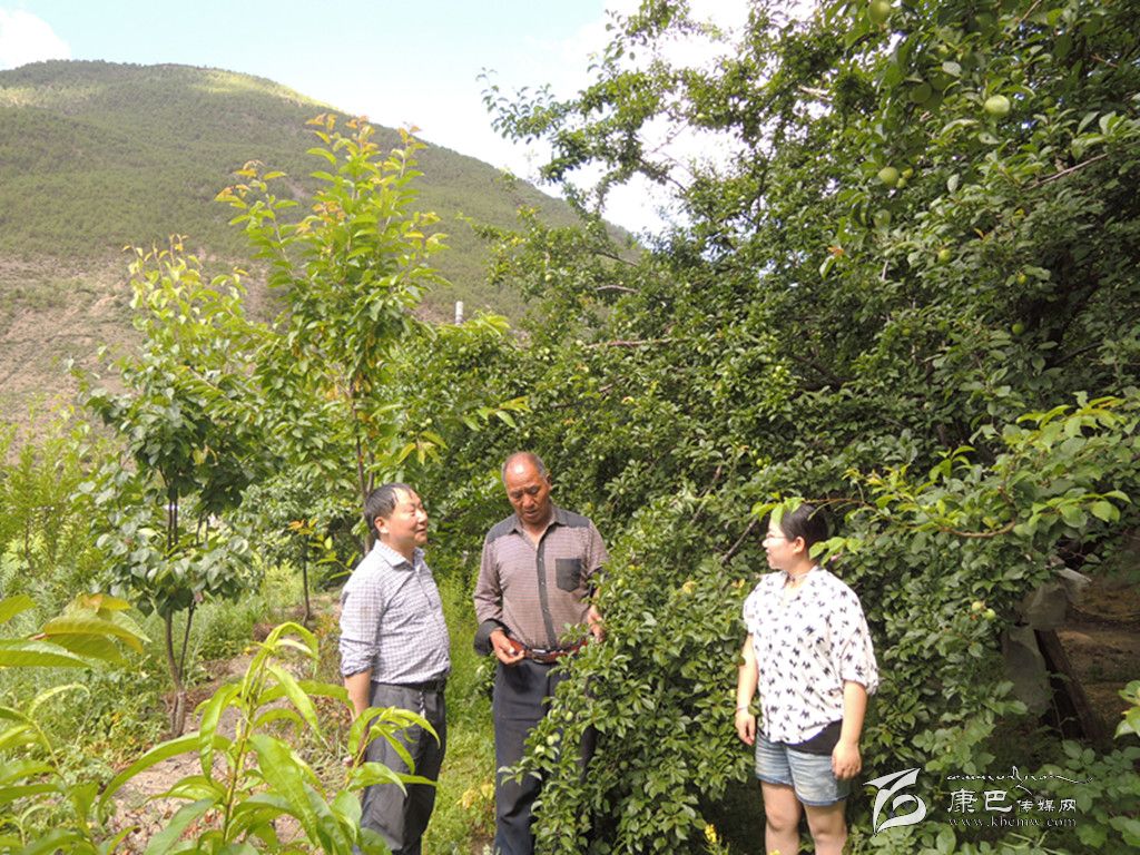 著木格絨在向農(nóng)技人員請教果木嫁接技術(shù)。