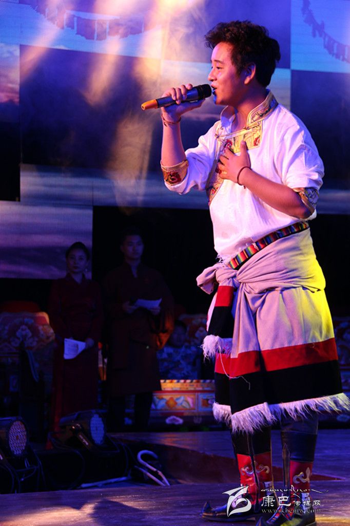 舞臺上,華麗的燈光將現(xiàn)場裝扮得格外絢麗,各種激光燈、電腦燈組成玄妙景觀,舞臺背景的LED電子屏幕不時展現(xiàn)著海螺溝的絕美風光,更是將每一首歌、每一段舞的含義進行了深層次的闡述,使每一首歌曲、每一段舞蹈都呈現(xiàn)出詩一般的意境。“一座山叫貢嘎山,一條溝叫海螺溝,溝里傳來的海螺聲,是海螺姑娘的祝福……海螺姑娘,你那多彩的衣裙,是那七彩的森林……”優(yōu)美、豪邁的格式和著恢宏大氣的舞美,使得現(xiàn)場觀眾完全陶醉在康巴文化的藝術享受中。