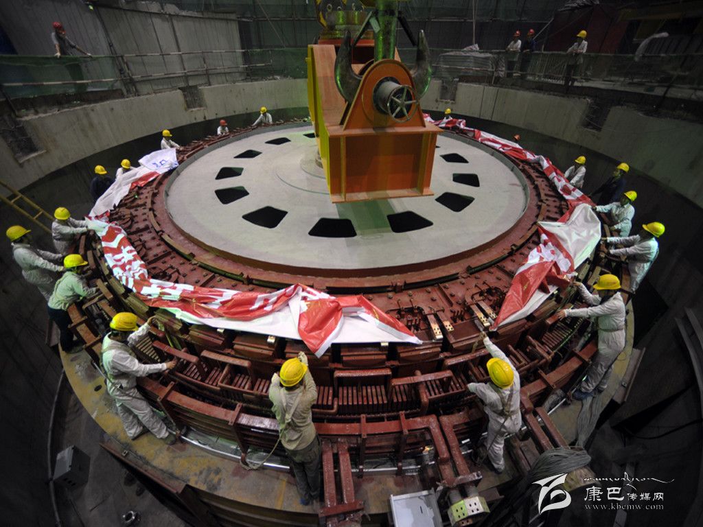 該轉(zhuǎn)子直徑為12.39米,高2.23米,重577噸,總吊裝重量620噸,是黃金坪水電站機(jī)電安裝工程中單件吊裝重量最大的設(shè)備。該轉(zhuǎn)子由東方電機(jī)有限公司制造。該轉(zhuǎn)子的順利就位,為該電站2號(hào)機(jī)組10月底投產(chǎn)發(fā)電創(chuàng)造了條件。