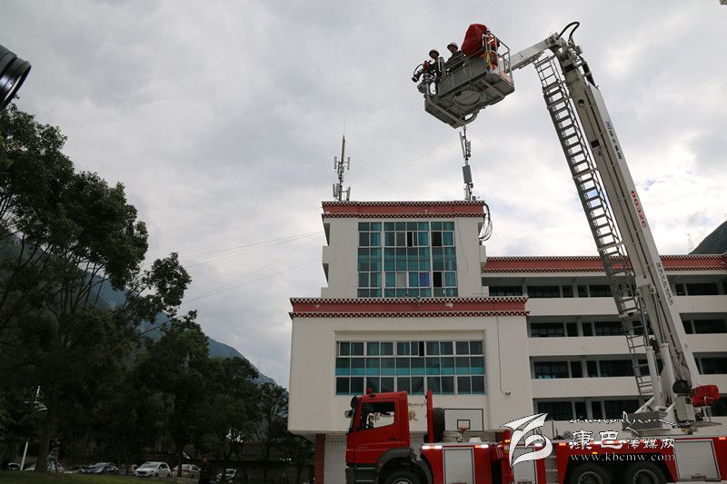 為使參訓學生更好地將此次學習到的消防知識融于實踐,消防部門還在校園操場,組織參訓學生開展了油盆火災撲救,現(xiàn)場學生紛紛踴躍報名,現(xiàn)場氣氛十分活躍。在消防官兵的指導下,學生們分為三組,利用手提式干粉滅火器進行了油盆火災撲救演練,提瓶、拔銷、對根、壓柄一氣呵成,火勢被順利撲滅。隨后,消防官兵又向?qū)W生們演示了單干線出兩支水槍滅火操,并介紹了甘孜州最尖端的消防車輛器材及裝備,組織參訓新生進行了一場32米登高平臺車高空作業(yè)體驗。按照操作規(guī)程,消防官兵協(xié)助參加體驗的學生戴好防護頭盔,扎上綁有安全繩的防護腰帶,順利登上了登高平臺。在消防官兵嫻熟的操作技術(shù)下,登高平臺勻速上升到20米高空,現(xiàn)場傳來了一陣陣驚嘆聲。