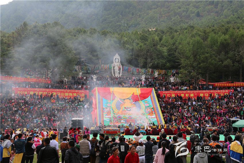 上午九時(shí)許,在陣陣法號(hào)和僧侶的誦經(jīng)聲中,莊嚴(yán)、隆重的“四月八”曬佛儀式拉開了跑馬山國(guó)際轉(zhuǎn)山會(huì)系列活動(dòng)的序幕。在人們的熱切期待中,釋迦牟尼的巨型唐卡畫緩緩展現(xiàn)在人們眼前。此時(shí),來自不同省份和地區(qū)以及外國(guó)友人,早已將數(shù)碼相機(jī)或手機(jī)準(zhǔn)備好,拍下美好的瞬間。來自河南的游客黃先生說:“能參加到康定‘四月八’轉(zhuǎn)山會(huì),真是太有福了,這是多年的夢(mèng)想,今天終于實(shí)現(xiàn)了。特別看到這幅釋迦牟尼唐卡像,真是壯觀,很震撼。”同樣,來自英國(guó)游客也被濃烈的儀式氣氛所感染,手中的相機(jī)就沒停下過,并用流利中文說:“節(jié)日舉辦得很好,不僅山美、水美,且民族文化底蘊(yùn)無窮,真是太棒了。”