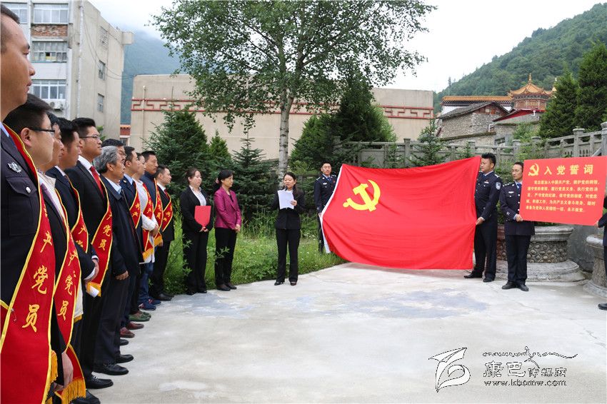 圖為新黨員面向黨旗莊嚴(yán)宣誓。