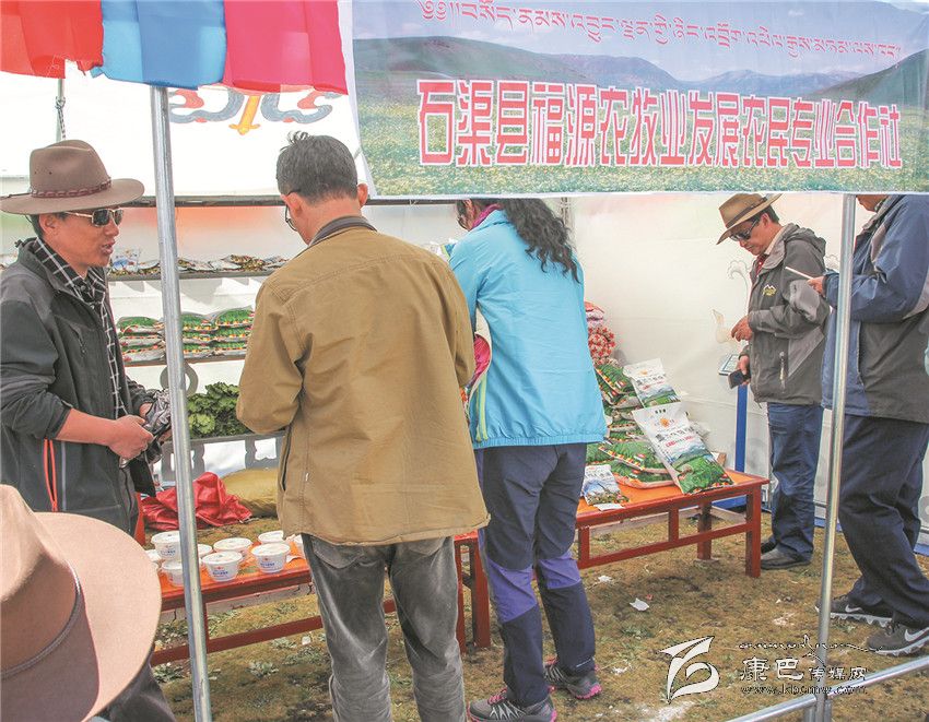 8月3日是石渠縣帳篷節(jié)的最后一天,清晨的陽光透過炊煙傾灑在草原千余頂帳篷上,40多歲的藏族漢子嘎戎從生活區(qū)的帳篷里出來,走向不遠(yuǎn)的太陽部落帳篷商貿(mào)城集市。那里安扎著400多頂帳篷,有商戶370家,周邊還有50多個(gè)流動的小商販。嘎戎所在的石渠縣福源農(nóng)牧業(yè)發(fā)展農(nóng)民合作社就是其中的一家參展商。從帳篷節(jié)開始,嘎戎就和其它5個(gè)人輪流值守這個(gè)他們倍加珍惜的展位,那是他們合作社自今年4月份成立至今第一次在如此重大的場合中露面,經(jīng)過這次檢驗(yàn),他們對自己的產(chǎn)品更加有信心。駐真達(dá)村第一書記祝修濤告訴記者,短短一個(gè)星期,合作社展售的糌粑、人參果、奶渣近2000斤,銷售額達(dá)4萬多元。這個(gè)農(nóng)民專業(yè)合作社以扶貧為己任,從建設(shè)種植基地到水磨房加工投入了200多萬元,全村50戶村民參與,合作社將原料統(tǒng)一發(fā)給村民加工,再統(tǒng)一收起來,統(tǒng)一包裝銷售。祝修濤說,社里的產(chǎn)品剛開始只是在當(dāng)?shù)爻鍪?,雖然投入大但產(chǎn)量不敢做大,這次有這個(gè)平臺得到了市場的認(rèn)可,他們對合作社的發(fā)展充滿了信心。祝修濤,作為該村的第一書記,他要帶領(lǐng)著這個(gè)合作社好好規(guī)劃、大干一場。