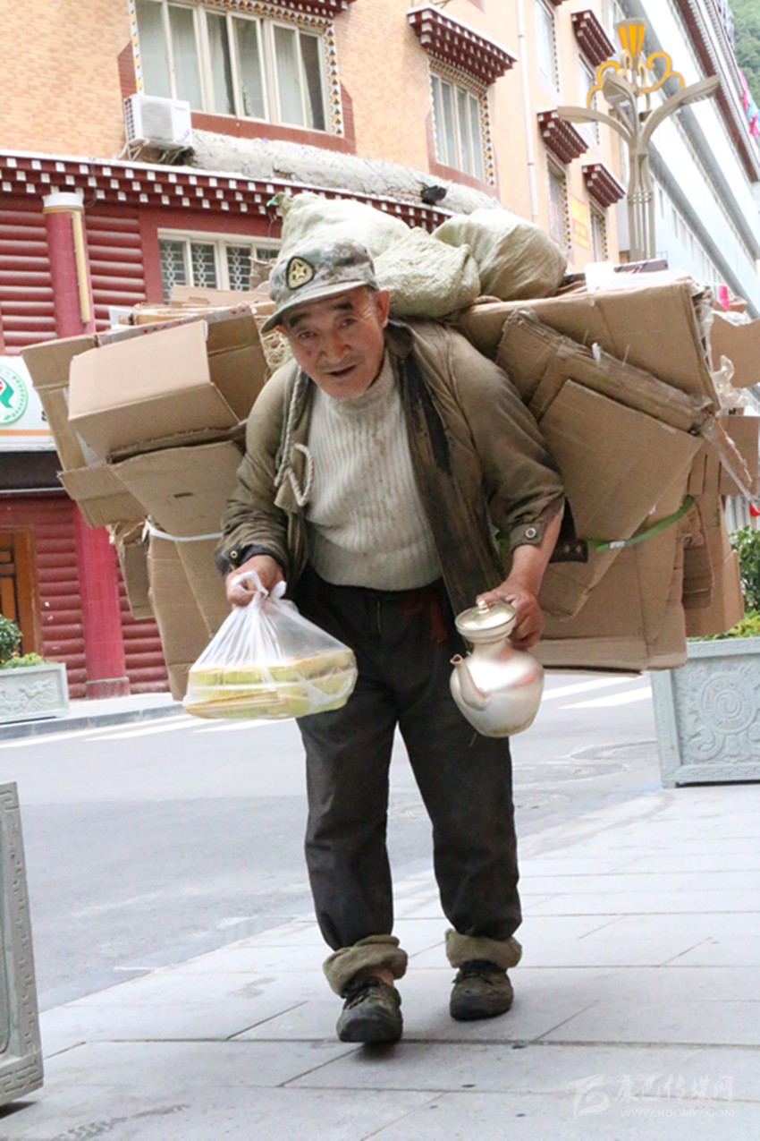 拾荒者:靠自己的勞動掙錢總是光榮的,更何況在自己掙錢的時候還保護了環(huán)境、節(jié)約了資源呢?一名拾荒老者,用樸實的行動闡釋了勞動二字的光輝——無分高低貴賤,但求有益于人。