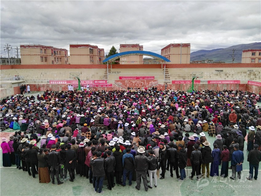 為了聽(tīng)這場(chǎng)宣講,卡仁呷瑪起了個(gè)大早,帶領(lǐng)30多名在家村民,坐汽車、騎摩托從25公里外的村上趕到鄉(xiāng)政府。雖然宣講會(huì)10點(diǎn)才開始,9點(diǎn)過(guò)鄉(xiāng)政府院壩就坐滿了從十個(gè)村趕來(lái)的226名牧民群眾。