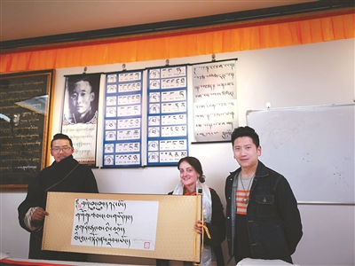 本網訊 前段時間,一篇微信文章《天空之城新玩法,老外學寫藏書法》刷爆了甘孜的微信朋友圈,法國女孩理塘學藏文書法的消息傳遍大街小巷。如今,這個叫寶林的女孩已經回到法國,她給教授她藏文書法的益西老師打來電話,感謝對她的教授。