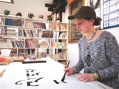 25歲的法國女孩寶林(中文名),環(huán)亞洲旅行剛到中國沒多久,在成都待了一星期后,想更多地探索藏文化的奧秘,于是來到理塘。在這個城市的任何角落都能感受到藏文化氣息的她,通過三完小藏族教師益西的介紹,4月19日來到理塘縣電子商務雙創(chuàng)孵化中心“扎納民族文化傳承基地”參觀,看到藏文書法那么美麗,就動了參加“民族書法免費培訓班”的念頭。