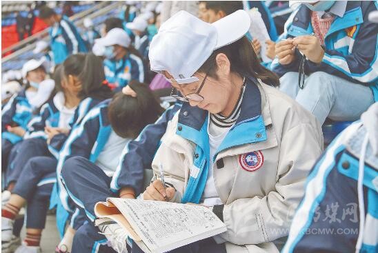 早上7點(diǎn)30分左右,記者來到這片特殊的學(xué)生方陣時(shí)發(fā)現(xiàn),不少學(xué)生把課本帶去了現(xiàn)場(chǎng),正趁著候場(chǎng)間隙埋頭苦讀。據(jù)康定中學(xué)老師李虓偉介紹,同學(xué)們是排練隊(duì)伍中進(jìn)場(chǎng)時(shí)間最晚、排練時(shí)間最短的一個(gè)團(tuán)隊(duì),“在不耽誤課程的情況下,孩子們將所有能抽出來的時(shí)間全部奉獻(xiàn)給這次演出了,所以每次排演總是格外地認(rèn)真,絲毫沒有怨言,為了節(jié)約時(shí)間,同學(xué)們還利用訓(xùn)練期間短暫的休息時(shí)間,埋頭溫習(xí)課本、做作業(yè)?!?/p>