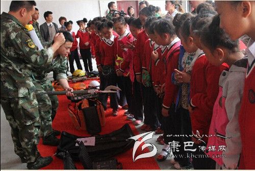 師生們在康定縣消防中隊副中隊長李勇的帶領下,參觀了消防員宿舍、榮譽室、軍人俱樂部等。官兵們“豆腐塊”的被子引起了學生們濃厚的興趣和強烈的好奇心。不少孩子親自動手,嘗試在消防官兵的指導下學習疊“豆腐”被子,并進行了內務整理。在消防器材展示環(huán)節(jié),師生們走進車庫,中隊官兵介紹了各類消防器材裝備的名稱、性能和使用方法以及各類消防車、隔熱服、避火服、防化服和背戴空氣呼吸器等特勤器材的性能和使用方法。在消防安全課堂上,官兵們向學生們播放了《校園消防安全警示錄》,并結合實際向同學們講解了學校防火的重要性、火場逃生自救方法、初期火災的撲救、滅火器的使用、如何報火警等基本消防知識。在聯歡活動現場,消防官兵傾力打造的舞蹈《小蘋果Style》贏得同學們滿堂喝彩,現場響起熱烈的掌聲。學生們帶來的《吉祥中國結,美滿中國夢》跳出了小朋友們的美滿幸福之情。文藝演出的最后,消防官兵們還為學生們帶來了消防時裝秀,穿著各式服裝的消防戰(zhàn)士閃亮登場,向孩子們講解了這些服裝在各種災害事故現場的用途。