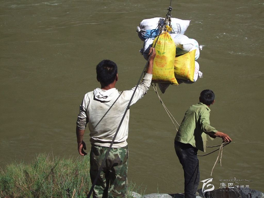 在河對岸,進(jìn)城是謀生計,改變命運,甚至振興家業(yè)的一條活路。河對岸博烏鄉(xiāng)的人們?nèi)ツ纠锟h城需要兩天,車費是200元;而過溜索到九龍縣城只要一天,全部費用是80元。博烏鄉(xiāng)的人們主要以賣藥材為生,一個星期需要過十幾次河,通過溜索,走八窩龍進(jìn)九龍縣城。