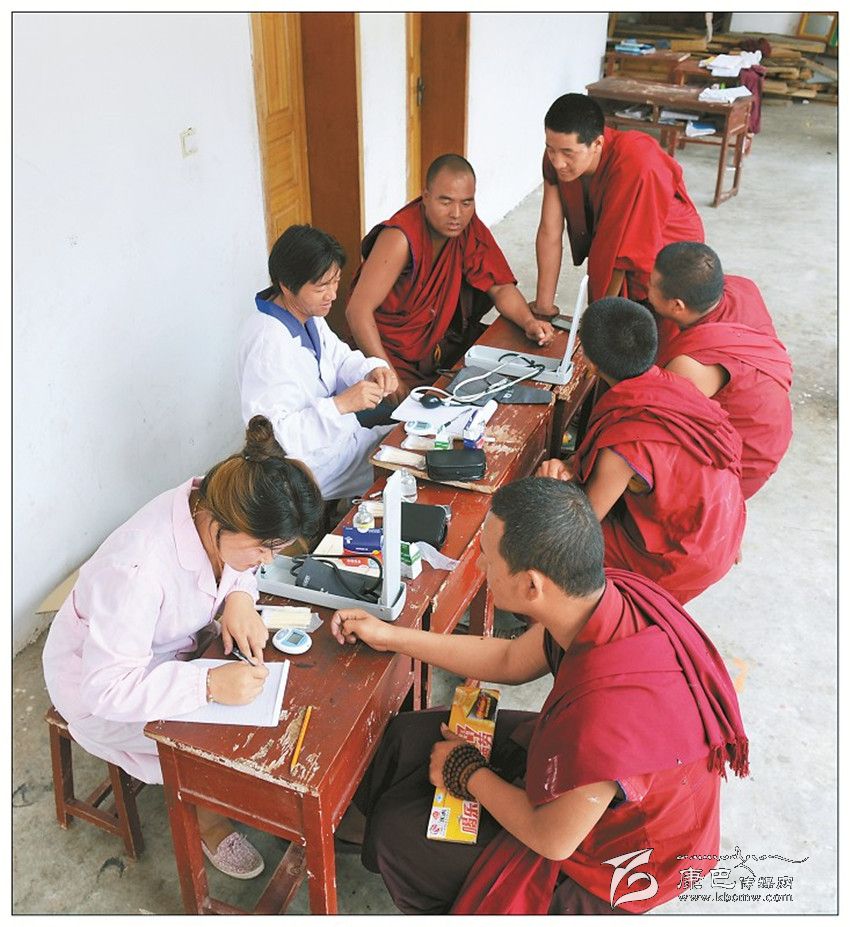 高原防控——醫(yī)務人員在預防包蟲病現(xiàn)場為學生檢查身體。
