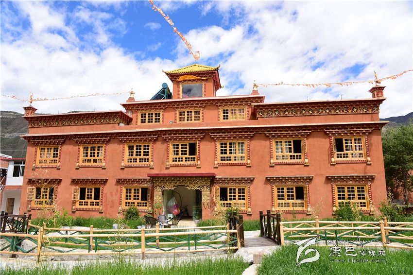 跟朗杰一樣,獨(dú)角龍村農(nóng)民多吉曲登也曾去香格里拉、稻城等地考察,回來后也搞起了民居接待,起名“德噶林”。德噶林是在原有藏房的基礎(chǔ)上進(jìn)行特色裝修而成,既保存了巴塘紅藏房原本的構(gòu)架,又融入了一些現(xiàn)代建筑元素。民居內(nèi)部的灶臺、茶桶、水缸等裝飾無不凸顯著巴塘深厚的農(nóng)耕文化。頗具現(xiàn)代氣息的衛(wèi)生間、咖啡廳等更是緊跟時代步伐。筆者采訪時恰遇一位前往西藏旅游的旅客辦理入住手續(xù),他告訴我們,在網(wǎng)上看到這家民居接待的信息時,覺得很有特色,價(jià)格也適中,就選擇了這里。還說如果原路返回的話,住巴塘仍會選擇住這里。