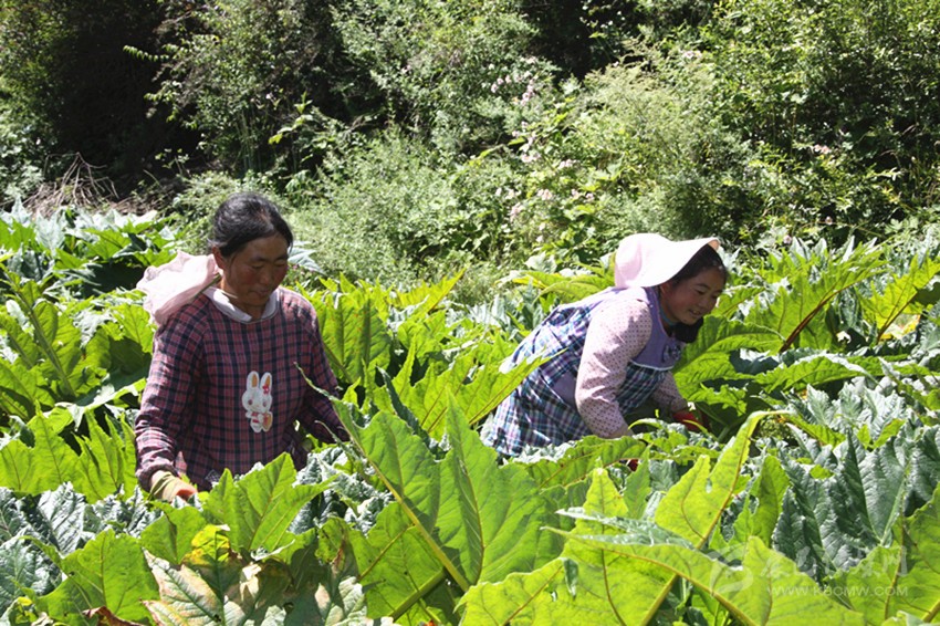 8月5日,康定市雅拉鄉(xiāng)雀公村,一場(chǎng)大雨之后,天空如洗,青山如玉??刀ㄊ腥腹兴幉姆N植農(nóng)民專業(yè)合作社的負(fù)責(zé)人梁發(fā)林和陳繼平來(lái)到藥材種植基地,查看藥材生長(zhǎng)情況。茂密的大黃已經(jīng)齊腰深了,滿目蔥翠?!斑@段時(shí)間雨水比較集中,雜草叢生,害蟲(chóng)滋生,要增加人手和請(qǐng)教農(nóng)科所的專家解決病蟲(chóng)害的問(wèn)題。”梁發(fā)林和陳繼平商量,藥材種植已經(jīng)到了加強(qiáng)管理的關(guān)鍵時(shí)刻了,不能掉以輕心。