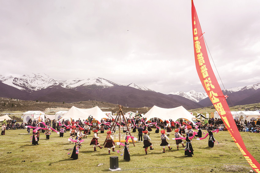 皚皚雪山相伴,莽莽森林環(huán)繞,措普湖猶如一面鏡子靜靜地躺在雪山下。湖邊草地上歡快的人們,或手拉手,跟著弦音學(xué)習(xí)巴塘舞蹈,或手捧一杯藏式奶茶,躺在沙發(fā)上,享受悠閑時(shí)光。